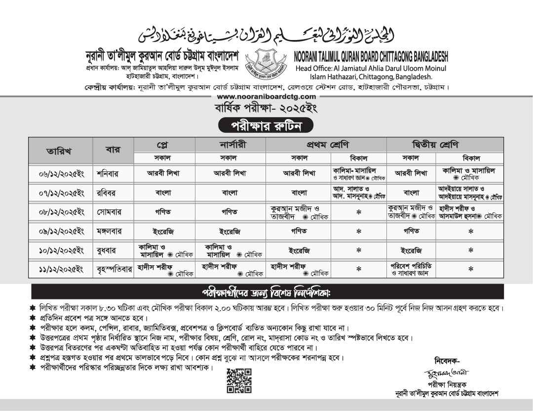 1 | September 24, 2025 | বার্ষিক পরীক্ষার রুটিন নার্সারী, প্রথম, দ্বিতীয় শ্রেণি-2025 | ডাউনলোড | রুটিন দেখুন |
